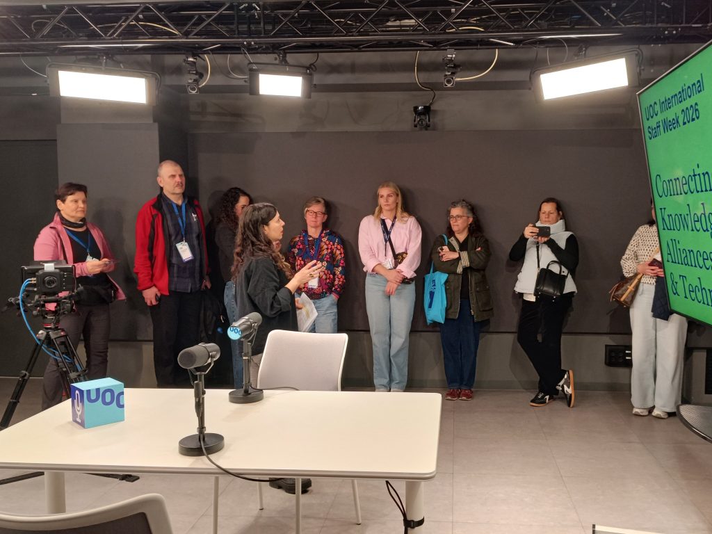 A pedido da UAb, foi organizada uma reunião com o Departamento de Comunicação da UOC em que foram trocadas experiências e boas práticas com os responsáveis das áreas da imprensa, redes sociais e comunicação de ciência.